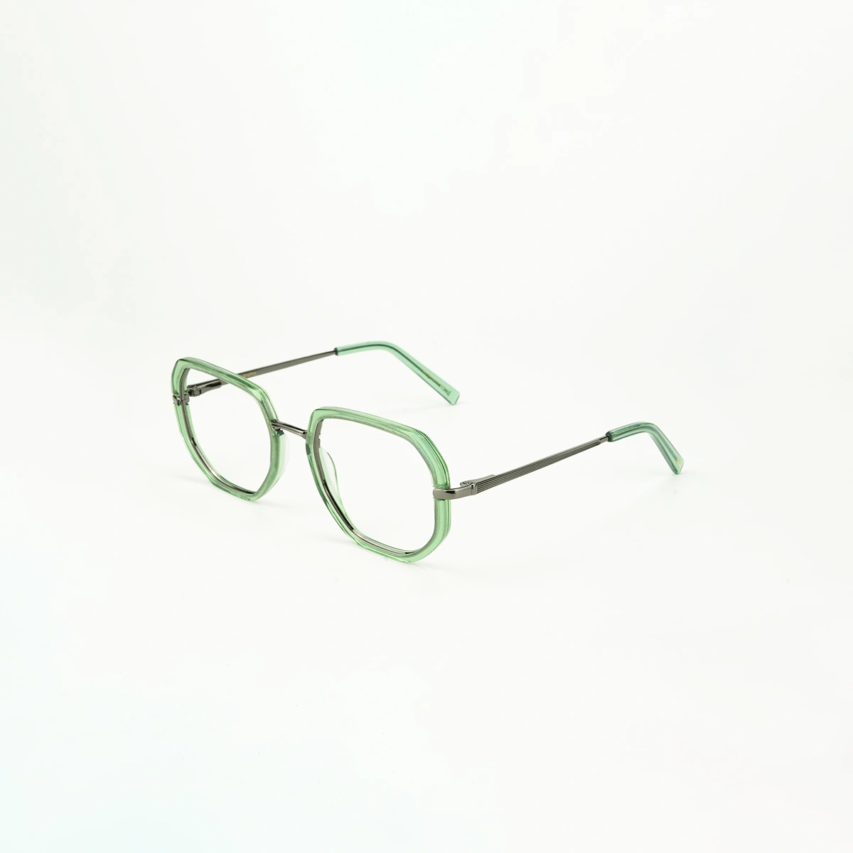 Ingeniería Híbrida: El modelo Ethan Verde combina un núcleo de titanio con un revestimiento total en acetato premium. Esta fusión ofrece una estructura indestructible que mantiene la ligereza y el color vibrante de la nueva colección.